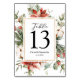 Watercolor Winter Poinsettia & Green Pine Tree Table Number