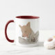 This mug features a red fox painted in watercolors surrounded by winter greenery and berries and pinecones. The inside and handle of this mug are a seasonal red to match the berries, but you can change that colour on the panel to the right.