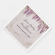 These romantic wedding napkins feature a vintage floral design. Purple watercolor wisteria flowers delicately hang across the top portion. The background features a rustic, lavender coloured parchment paper pattern. An antique style gold frame borders the text portion.