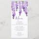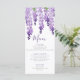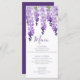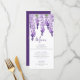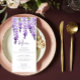 This menu card design features elegant watercolor wisteria flowers in soft lavender and purple with green leaves on a white background with your with your personalised menu below. The text can be personalised by editing the text boxes. The colour on the reverse side of the menu can be changed in the editor. Designed for you by Evco Studio © at www.zazzle.com/store/evcostudio
