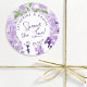 Watercolor Wisteria Wedding Spread The Love Script Labels features elegant watercolor wisteria flowers in soft lavender and purple with green leaves on a white background with your wedding thank message and the date below. On the reverse is a soft lilac. Personalise by editing the text in the text boxes. Designed for you by Evco Studio www.zazzle.com/store/evcostudio