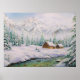 Watercolor Wood Houses and Pine Tree in Snow Poster.