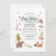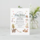 Simply create a cute woodland animals baby shower invitation with this template featuring an owl, fox, bear, squirrel, deer, mushrooms and more for your cottage core theme shower for the mum-to-be.