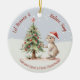Add a special touch to your Christmas tree with this customisable ornament that features a beautiful watercolor illustration of a rabbit decorating a pine tree amongst freshly falling snow. This charming design includes customisable typography that says, “Let Heaven and Nature Sing,” and “Baby's First Christmas,” along with space to add a name and current year. Modify the four text areas to create a cherished keepsake to celebrate baby’s first Christmas.