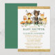 Watercolor Woodland Animals Shower Glitter Green Invitation