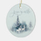 Christmas Ornament | Whimsical watercolor woodland scene with snow covered evergreens and magical white deer - Peace on Earth in calligraphy on the front - name date and a beautiful winter floral spray on the back. This is part of the Watercolor Woodland Deer Collection by WhimsicalArtwork™