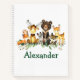 Watercolor Woodland Animals Forest Animals Drawing Notebook. Baby Animals include Bear, Deer, Moose, Racoon, Bunny Rabbit, Fox and Owl on eucalyptus leaves. Add Name.