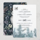 Rustic country farmhouse watercolor ephemeral features forest pine tree and owl and classic typography wedding invitation. Other side is a large watercolor owl sprinkled with greenery botanical floral overlaying a dark navy blue. Your guest will love receiving this enchanted wedding invitation. Matching items with this invitation.