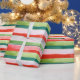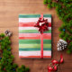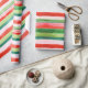 Watercolor stripes in classic Christmas colours: red, green, white and gold.