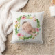 Watercolor wreath blush pink personalised photo pillow. Personalised baby gift in green, pink, peach and blue inspired colour scheme. With space for a name.