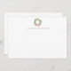 Modern Watercolor Greenery Wreath & Red Bow Holiday Note Card