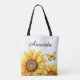 Watercolor Yellow Custom Script Name Sunflower Tote Bag