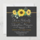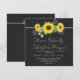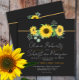 Watercolor Yellow Sunflowers Black Square Wedding Invitation