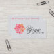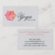 These elegant yoga instructor business cards are sure to help any yoga studio stand out. They feature a textured grey background. On top of this background is a pink and orange flower with a water colour effect. Stylised text reads "Yoga Teacher". You can change teacher to studio, trainer, etc. The back contains room for your name, job title and contact details.