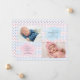 This pink and blue, watercolor, zig zag pattern creates an ideal background for a twins birth announcement. <a href='http://www.freepik.com/free-vector/watercolor-zig-zags-patterns_841787.htm'>Designed by Freepik</a>. <a href='http://www.freepik.com/free-vector/coloured-speech-bubbles-collection_855716.htm'>Designed by Freepik</a>.br/><br/>The card is easy to customise with your wording, font, font colour, paper shape options and choice of six paper types.<br/><br/>Not exactly what you're looking for? All our products can be custom designed to meet your needs at no extra charge.<br/><br/>Simply contact us at askcottonlamb@gmail.com<br/><br/>Coordinating products available: Just ask us!
