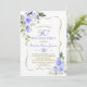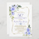 Watercolour Blue Floral Gold Frame 50th Birthday Invitation