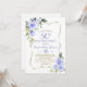 ANY AGE! Elegant card design featuring watercolour delicate blue flowers and green leaves, a faux gold frame, floral divider, on a white background. On the back blue flowers bouquet. Use Personalise tool to add your info, change fonts, font's colours. For matching items, please, visit my Blue Floral Bloom Collection.
