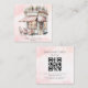 Watercolour, blush pink, Bakery QR code Square Business Card