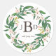 Watercolour twig and floral botanical wreath with monogram details. Brown and pink blush colours with serif font initials. Perfect for wedding favour or engagement party sticker or tag.