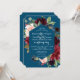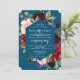Elegant card design featuring gorgeous watercolour burgundy, blush & navy blue floral diamond frame, modern handwriting "wedding day" script, on navy blue background. Use Personalise tool to add your info, make changes. For matching items, please, visit my Merlot & Navy Blue Floral Collection.