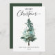 Wish your friends or family a Merry Christmas with this elegant, minimalist watercolour winter Christmas tree surrounded with sparkles of gold glitter Christmas Card. The flat card is set against a back drop of white to represent crisp white snow and the back of the card is in a nature inspired forest green. The card can be personalised with the inclusion of your family name and the other design text can be kept as-is, edited or deleted.