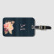 Navy blue textile like background with blush watercolour peonies and roses on gold foliage. Custom blush pink elegant handwritten monogram to customise your luggage tag