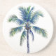 This image showcases a beautiful watercolour painting of a palm tree. The tree trunk is depicted in soft shades of blue, while its fronds are a blend of vibrant greens, with touches of yellow and blue, giving it a fresh and tropical feel. The delicate brushstrokes create a sense of lightness and movement, capturing the essence of a sunny, coastal atmosphere. A lovely design that would complement any beachside, tropical or Hamptons style home.