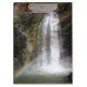 A clipboard of a photo of a waterfall with a beautiful arcing rainbow at the bottom.