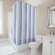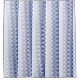 Shower curtain with a design of vertical wavy lines in graduated shades of blue from dark blue through to white. Looks like an abstract waterfall.