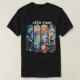 This black garment features four vertical panels showcasing vibrant watercolor-style illustrations of marine life and nautical themes. An anchor, a sailboat, a school of fish, a shell, a dolphin, and a lighthouse with rope are featured. The text "FISH VIBES" is printed at the top. It's a lively design for those who love the ocean.
