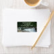 A photograph of a waterfall on an address label