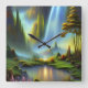 Waterfall Mountain Valley Square Wall Clock