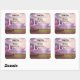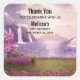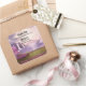 Birthday thank you stickers with a scenic image of a peaceful purple lake. Surrounded by lush cherry trees and waterfalls.