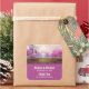 Wedding thank you stickers with a scenic image of a peaceful purple lake. Surrounded by lush cherry trees and waterfalls.