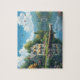 This peaceful jigsaw puzzle features a serene waterfront cottage or lake house scene. The image showcases a charming light green house with a dock extending over the still water, reflecting the beautiful sky and surrounding mountain landscape. Ducks swim peacefully, adding to the tranquil nature scene. This puzzle is perfect for those who love cottagecore aesthetics, lake life, and relaxing summer scenery. It makes a wonderful housewarming gift or a lovely way to unwind.