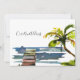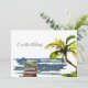 A tropical watercolor palm tree leans over the water on this southern themed new address announcement card. The scene also displays a wooden dock, for those lucky enough to now live in a waterfront home, whether on the intracoastal waterways or a lake. All sample text on front and back of this flat card can be easily revised with your personal greeting and contact details. This design is also available on a postcard and is part of our Change of Address Collection.