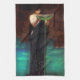John William Waterhouse Circi Invidiosa kitchen towel. Oil painting on canvas from 1892. English painter John Waterhouse’s Circe Invidiosa depicts a classic scene from Ovid’s Metamorphoses. The goddess Circe stands wearing a beautiful peacock dress pouring a bowl of green potion into the pool into which her romantic rival Scylla is going to bathe. The waters below bubble and turn an enchanting aquamarine. A great gift for fans of J.W. Waterhouse, Greek mythology, the Pre-Raphaelites, Ovid, and English Romantic painting.