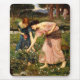 John William Waterhouse Gather Ye Rosebuds mouse pad. Oil painting on canvas from 1909. One of Waterhouse’s most beloved paintings, Gather Ye Rosebuds While Ye May features two barefoot young women gathering pink, white and red roses from a verdant field. The brunette wears a pink dress, the redhead a dark blue dress. Both bend down towards a bush of miniature white roses while two other girls stand in the background beside a pretty stream. A great gift for fans of J.W. Waterhouse, the Pre-Raphaelites, English Romantic painting, rose painting, and floral art.