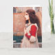 John William Waterhouse Juliet greeting card. Oil painting on canvas from 1898. The English artist John Waterhouse painted a variety of literary and mythical scenes with a charming degree of romanticism. Shakespeare was a frequent theme for Waterhouse, and Juliet stands as a beautiful example of his love of the female face in profile. Juliet is depicted as a young girl brown eyes and with wavy dark brown hair wearing a gold headband and a white renaissance dress with red sleeves. The girl is looking on the streets of Verona as she touches her blue bead necklace. A great gift for fans of John Waterhouse, Romeo and Juliet, Shakespeare, and English Romantic painting.