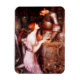 John William Waterhouse Lamia and the Soldier magnet. Oil painting on canvas from 1906. John Waterhouse frequently depicted mythological figures, and Lamia and the Soldier is a lovely example of his love of female mythological figures. Lamia sits at the feet of a soldier clad in metal armour in a pink dress with a snakeskin wrapped about her arm and waste. A beautiful mediaeval take on a classical theme. A great gift for fans of J.W. Waterhouse, Greek mythology, the Pre-Raphaelites, English Romantic painting.
