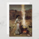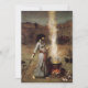 John William Waterhouse the Magic Circle invitations. Oil painting on canvas from 1886. The Pre-Raphaelite painter John Waterhouse regularly drew from literary and mythological themes. The Magic Circle continues the artist’s fascination with the supernatural, depicting a sorceress with dark hair drawing a magic circle in the dirt with a wand. Wearing a blue dress decorated with Persian figures, she stands beside a cauldron smoking above the orange and red embers of a glowing fire. Black ravens stand nearby watching the ritual unfold. A great gift for fans of J.W. Waterhouse, the Pre-Raphaelites, magic, sorcery, and English Romantic painting.