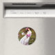 John William Waterhouse Windflowers magnet. Oil painting on canvas from 1902. Pre-Raphaelite John William Waterhouse frequently painted literary themes, and Windflowers is a beautiful example of the artist’s lifelong fascination with poetic heroines. The painting features a young woman with dark black hair standing in a field of wild flowers as the wind whips across the scene. She wears a white dress with purple sleeves, skirt and stitching. In her apron she carries pink, purple and red flowers which she holds close against the wind. A great gift for fans of J.W. Waterhouse, the Pre-Raphaelites, and English Romantic painting.