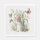 Retro watering can with tulips and butterflies in a watercolor effect.