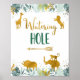 This cute sign will be a great addition to your party decor. Frame the sign and display it at your drinks table. The design features faux gold foil safari animals with watercolor greenery.