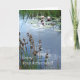 A Retirement good wishes card with waterlilies and reeds on a pond, from a photograph by Judy Adamson.
