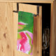 Modern floral, modern watercolour art from original painting by artist Sacha Grossel. This beautiful pink waterlily amongst dark green and lime green foliage shows an abstract depiction of the waterlily's reflection.
