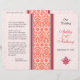 The text on this watermelon pink and coral orange damask wedding program is fully customisable. It is intended to be folded down the middle. To change the text, use the personalise option. For more extensive changes, such as changes to the font, font colour, font size, or text layout, use the customise it option. Once your text is finalised, if you need to move it around a bit, you can do that using the customise it option. This damask special occasion program is currently customised as a wedding program, but it would work well as a program for other special occasions as well. Really, this would even make a really nice church bulletin with changes to the text. Let your imagination lead you.