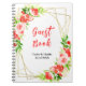 This beautiful and elegant wedding guest book features watercolor watermelon, pomegranate, strawberries, cherries and foliage on a gold geometric frame. The text combines handwritten script and serif fonts for a stylish and modern look. This is perfect for a spring or summer rustic wedding.