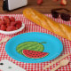 An illustration of a whole watermelon and a slice of it. Watermelon is an oblong or spherical fruit with a striped green or dark green outer rind and a sweet juicy reddish or yellowish colour flesh. This fruit can be seeded or seedless. Watermelon is one of the favourite refreshing fruits for summer. You can eat this fruit fresh and cold or prepare a tasty watermelon shake. Watermelon hydrates and provides good nutrients to your body. If you already see lots of watermelons on the market, it is time to say "Hello, Summer!".