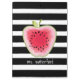 A clipboard for teachers featuring an apple with a watermelon design. Background is black and white stripes. Personalise the name.